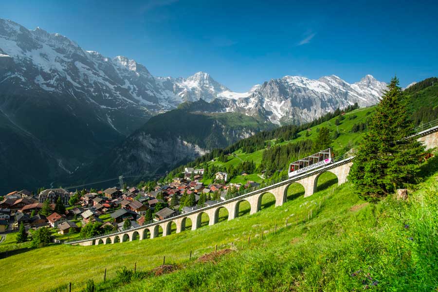 «Der Weg ist das Ziel» – lassen Sie den Alltag im Tal und reisen Sie per Gondel und Bahn ins autofreie Bergdorf Mürren.